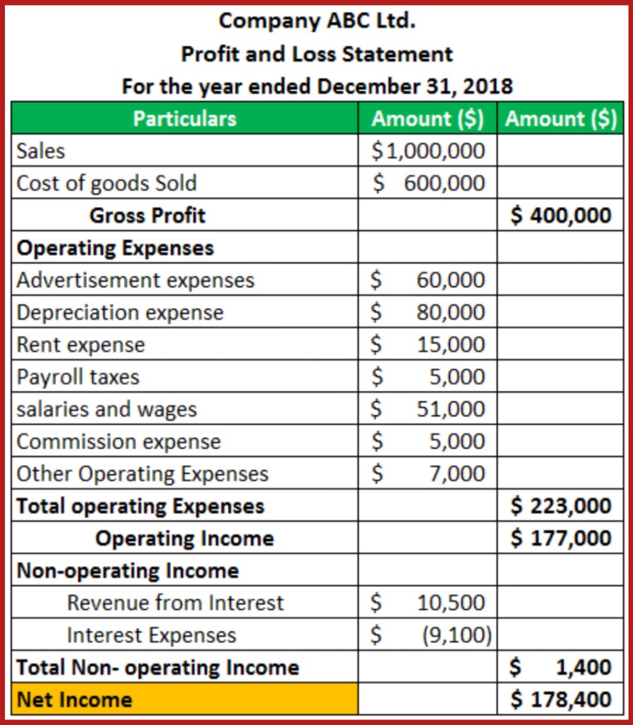 Net income is the bottom line of the profit and loss statement, and it represents the company’s profit or loss for the period. It is calculated by subtracting all expenses from revenue, including both operating and non-operating expenses.