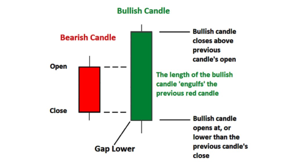 Second Candle: The second candle in the pattern is a bullish candlestick that completely engulfs the prior bearish candlestick. This means that the opening price of the bullish candlestick is lower than the closing price of the prior bearish candlestick, and the closing price of the bullish candlestick is higher than the opening price of the prior bearish candlestick. This indicates that the bulls have taken control of the market and are likely to continue pushing prices higher.