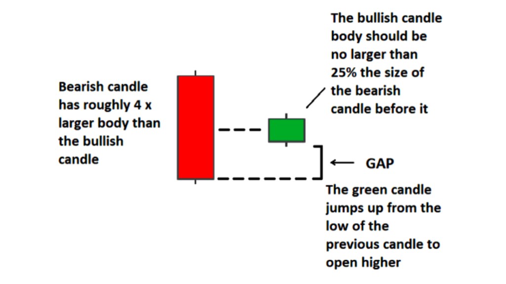 The small bullish candlestick should open lower than the previous candlestick’s close and close higher than the previous candlestick’s open.