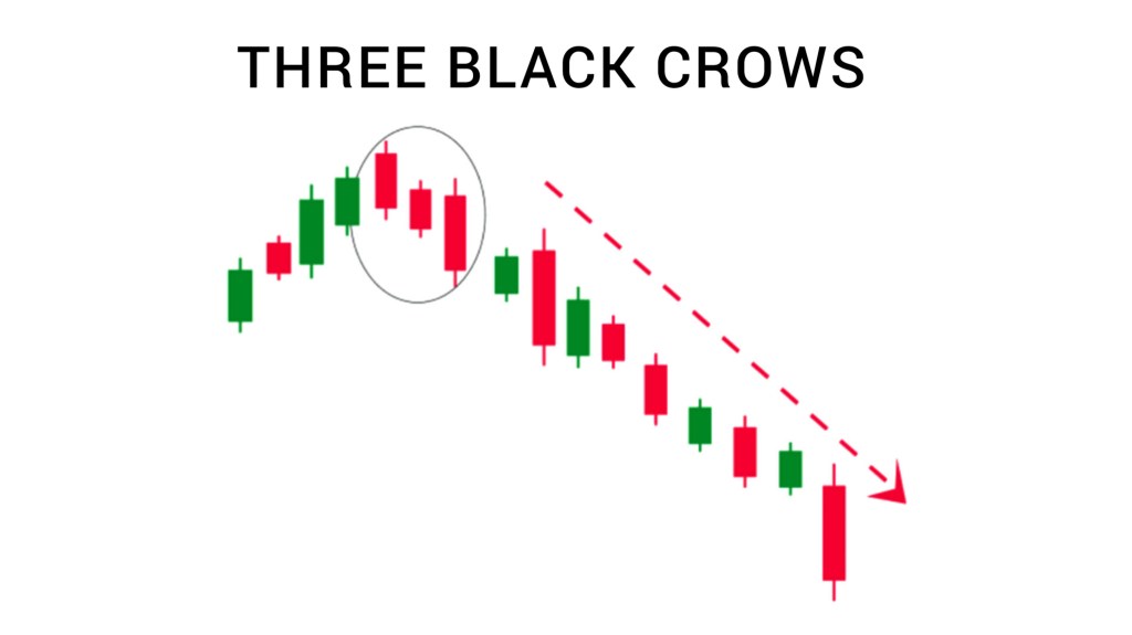 The “Three Black Crows” candlestick pattern is a bearish reversal pattern that occurs during an uptrend. It consists of three consecutive long bearish candles with small or no upper wicks, and each candle opens below the previous day’s open. This pattern indicates that bears have taken control of the market, and the uptrend is likely to reverse to a downtrend.