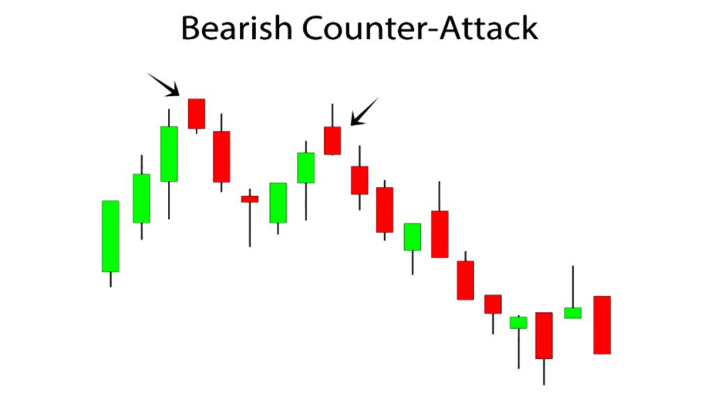 The “Bearish Counterattack Line” is a two-candlestick pattern that can occur during an uptrend and indicates a potential reversal of the trend. It is a bearish pattern that signals a potential shift in sentiment from bullish to bearish.
