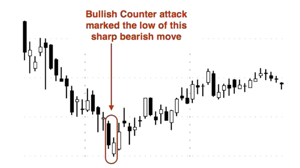 The “Bullish Counterattack Line” is a candlestick pattern that occurs during a downtrend and signals a potential reversal in the trend.