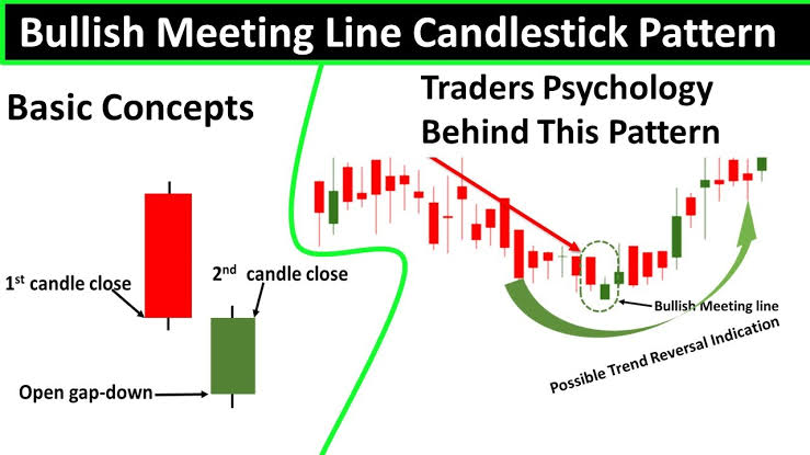 “Bullish Meeting Lines” candlestick pattern is a two-candle pattern that can signal a potential bullish reversal in the market. It occurs when a downtrend is in progress, and the bears are in control of the market. However, during the formation of the pattern, the bulls step in and begin to push prices higher, indicating a shift in market sentiment.