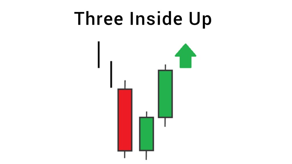 The “Three Inside Up” candlestick pattern is a bullish reversal pattern that indicates a potential trend reversal from bearish to bullish. It’s a three-candle pattern that forms after a downtrend, signaling that the bulls are starting to gain control over the market.
