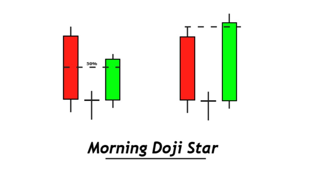 In summary, the Morning Doji Star pattern is a bullish candlestick reversal pattern that consists of three candles, and it signals a potential change in trend from bearish to bullish. Traders typically use additional technical analysis indicators to confirm the pattern and look for high trading volume on the third candlestick to confirm the bullish trend reversal.