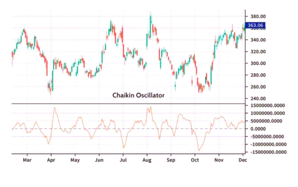 In the chart above, the red line represents the Chaikin Oscillator. As you can see, the oscillator fluctuates above and below the zero line, indicating changes in momentum. Traders and investors use the oscillator to identify potential trend reversals, confirm the strength of a trend, and to generate buy and sell signals.