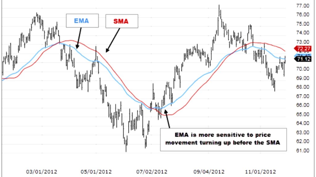 The EMA is calculated by taking the average of a given number of periods of price data, with more recent periods weighted more heavily. The formula for calculating EMA is as follows:
