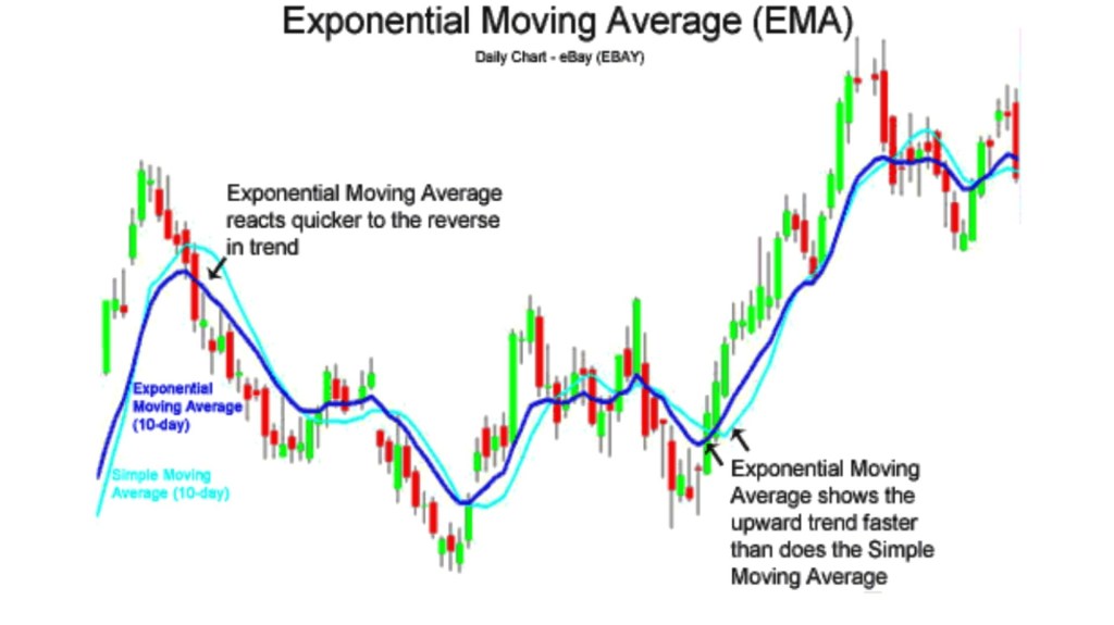 The Exponential Moving Average (EMA) is a technical indicator used to identify trends in stock prices or other financial instruments. It is similar to the Simple Moving Average (SMA), but it gives more weight to recent price data points, making it more responsive to short-term price movements.