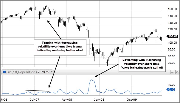 The standard deviation can be used in conjunction with other technical indicators to provide a more complete picture of market conditions. For example, it is commonly used with moving averages to create Bollinger Bands, which are a popular tool for identifying overbought and oversold conditions in the market.